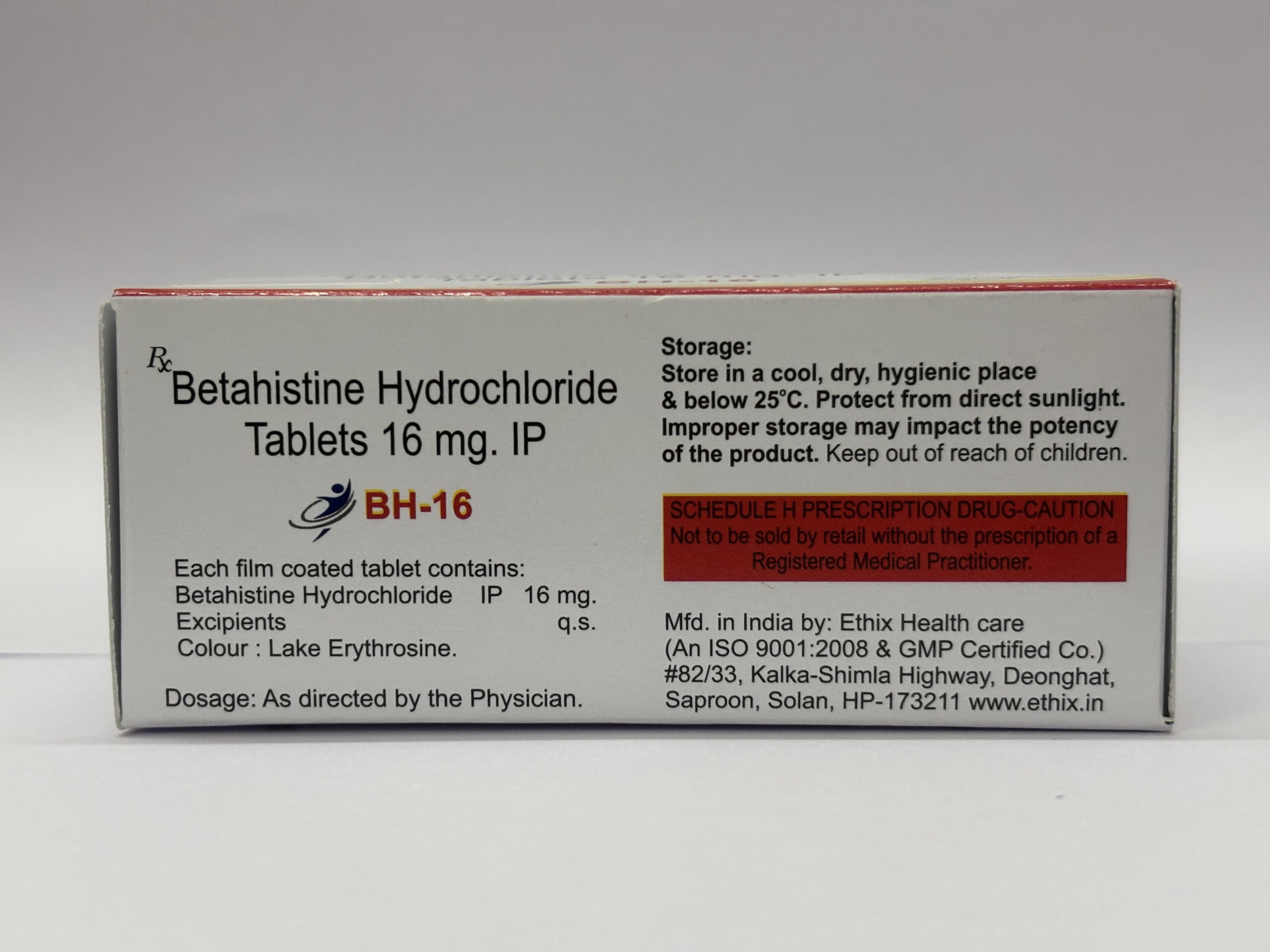 BH- 16mg Tablet improves blood flow to the inner ear which reduces the pressure of excess fluid there. It is this pressure that is thought to cause the symptoms of nausea, vertigo (dizziness), tinnitus and hearing loss in people who have Ménière’s disease. This medicine makes the symptoms milder and reduces the number of times you get the symptoms.